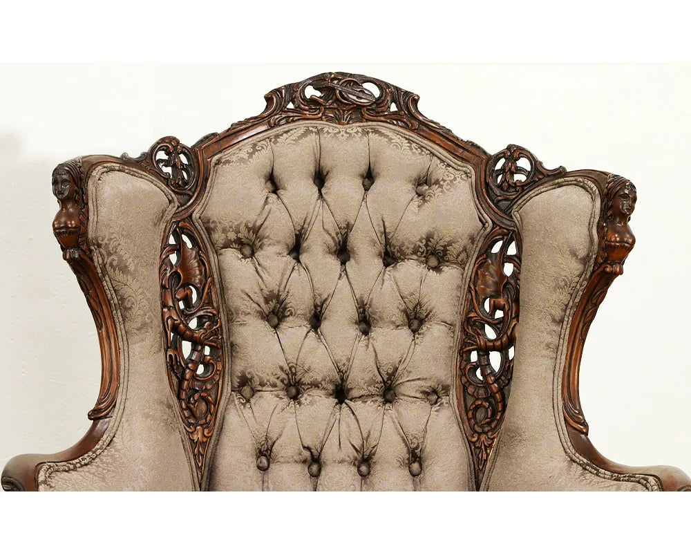 Discover Timeless Elegance with Our Antique Look Premium Handmade Wing Arm Chair. Crafted with Exquisite Care and Attention to Detail, This Chair Adds a Touch of Vintage Charm to Any Space. Experience Comfort and Style in One as You Sink into the Plush Cushions and Let the Distinctive Wing Design Embrace You. Elevate Your Décor with a Piece of Artistry That Blends the Past and Present Seamlessly. Indulge in the Beauty of Expert Craftsmanship and Bring Home a Masterpiece That Transcends Generations.