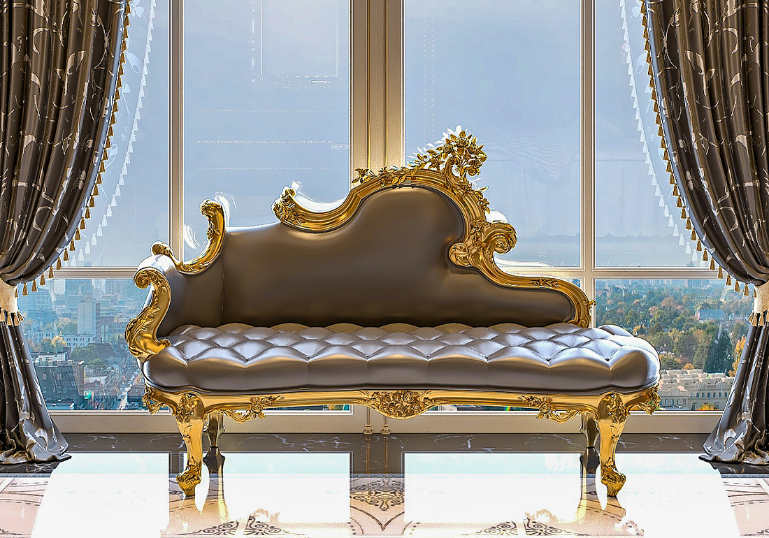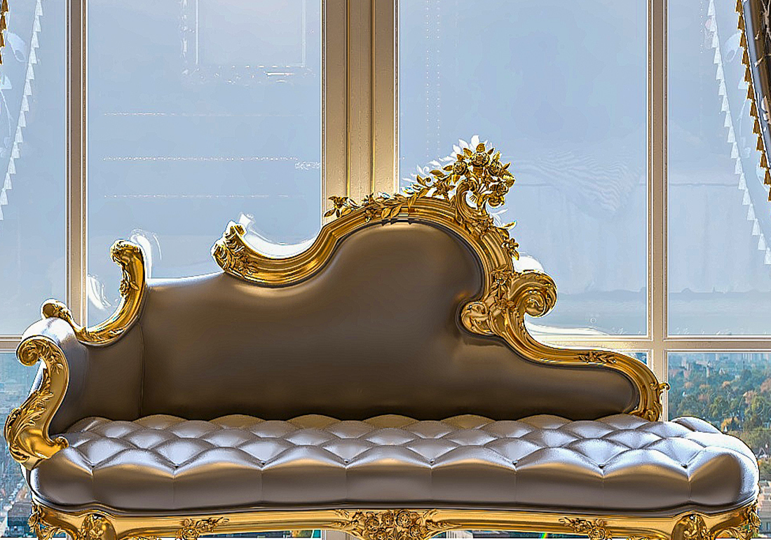 The lounge’s graceful silhouette features a gently reclining backrest and a wide, supportive seat, perfect for moments of relaxation. Curved armrests and elegantly carved legs give the piece an air of opulence, while the hand-finished details demonstrate the exceptional craftsmanship that goes into creating each chaise. Whether placed in a living room, bedroom, or study, this chaise lounge serves as an eye-catching focal point and a comfortable retreat.