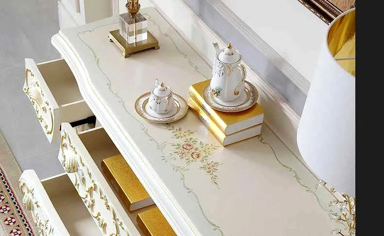 Elevate your living space with our luxurious golden TV cabinet, designed to exude opulence and sophistication. Crafted from the finest materials, this stunning piece features a sleek and modern design, accentuated by its gleaming gold finish. With ample storage space for all your entertainment needs, including adjustable shelving and cable management solutions, this TV cabinet seamlessly combines style and functionality. Whether you're hosting a formal soirée or relaxing with loved ones, our golden TV cabinet is sure to be the centerpiece of your home. Indulge in the ultimate luxury with this exquisite addition to your living space.