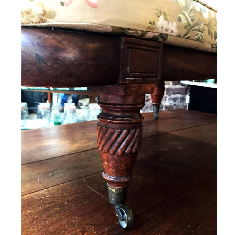 The sturdy mahogany frame of the chaise longue is beautifully carved, featuring graceful curves and ornate detailing that pay homage to the classic Regency style. The rich, warm tones of the mahogany wood add a touch of luxury and create a captivating focal point in any room.