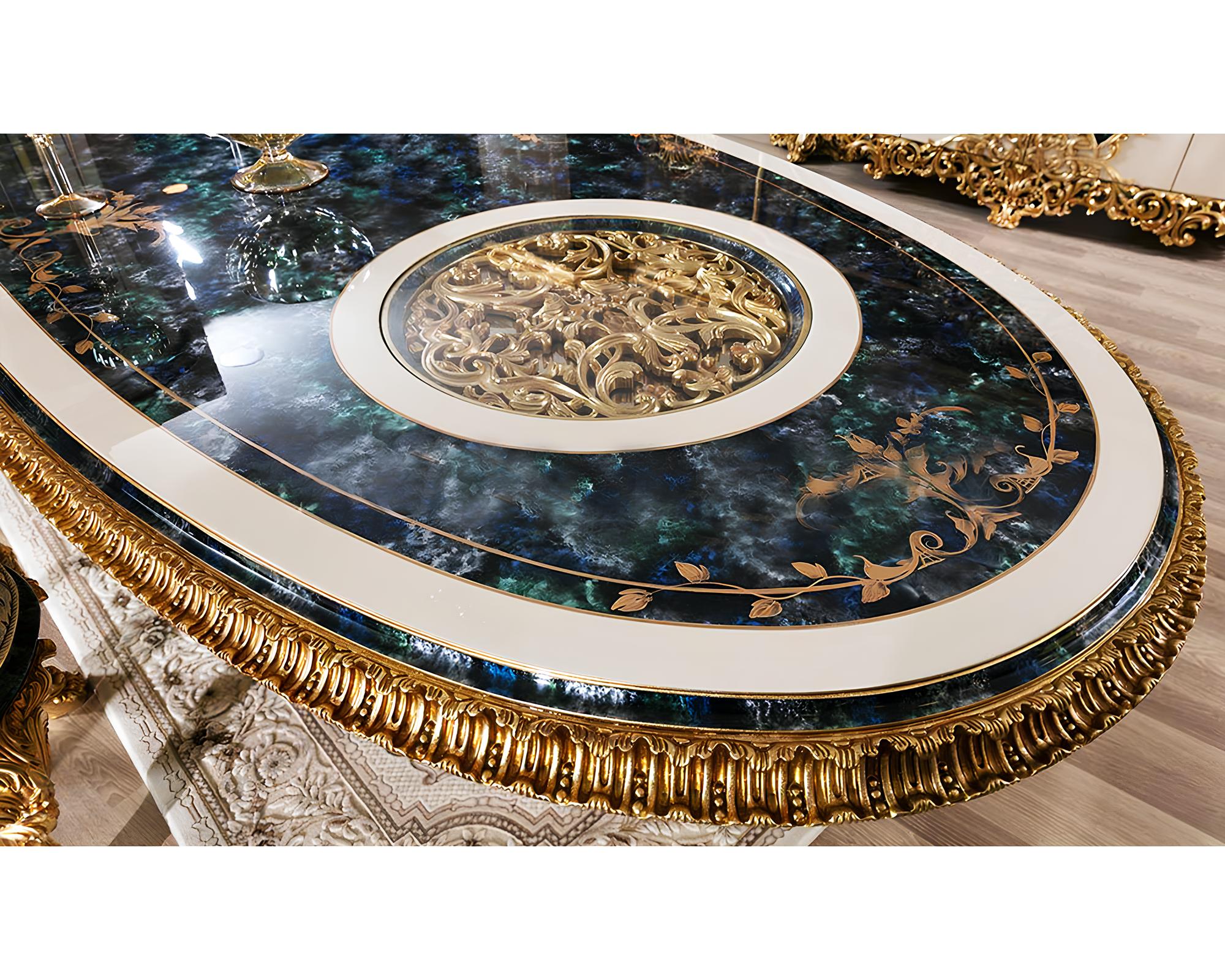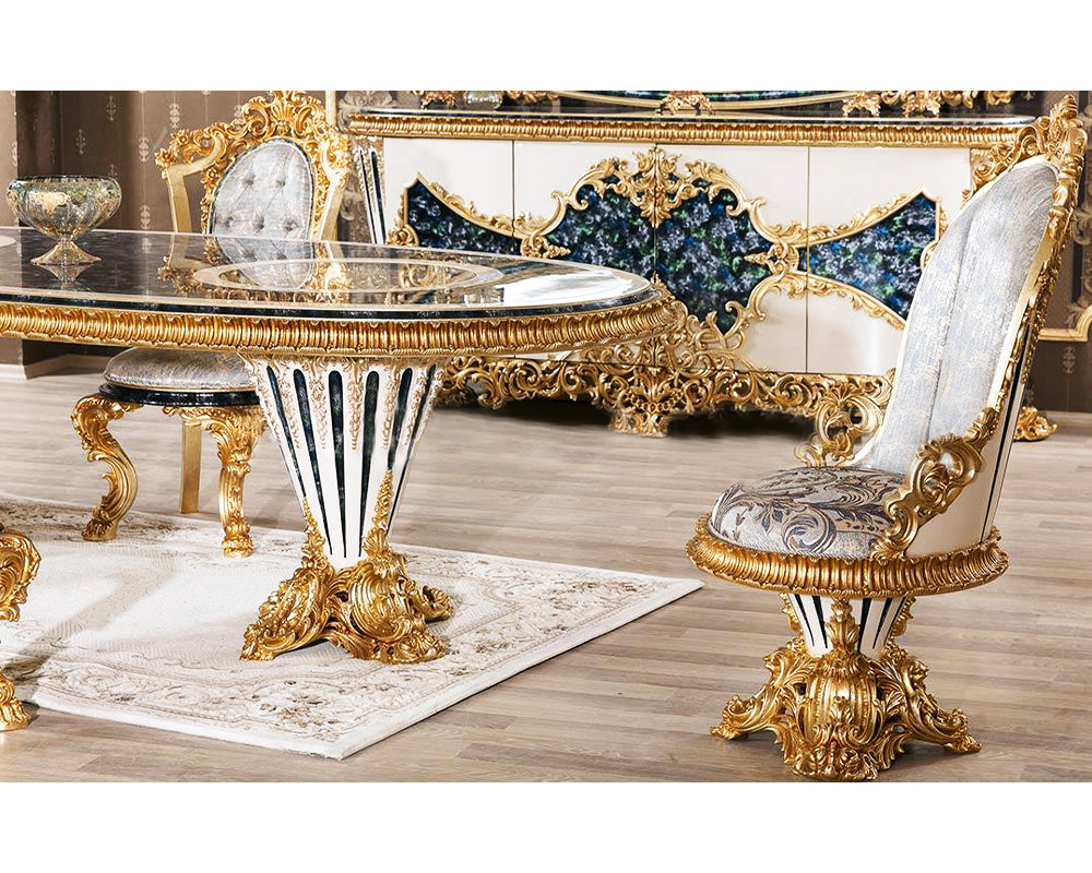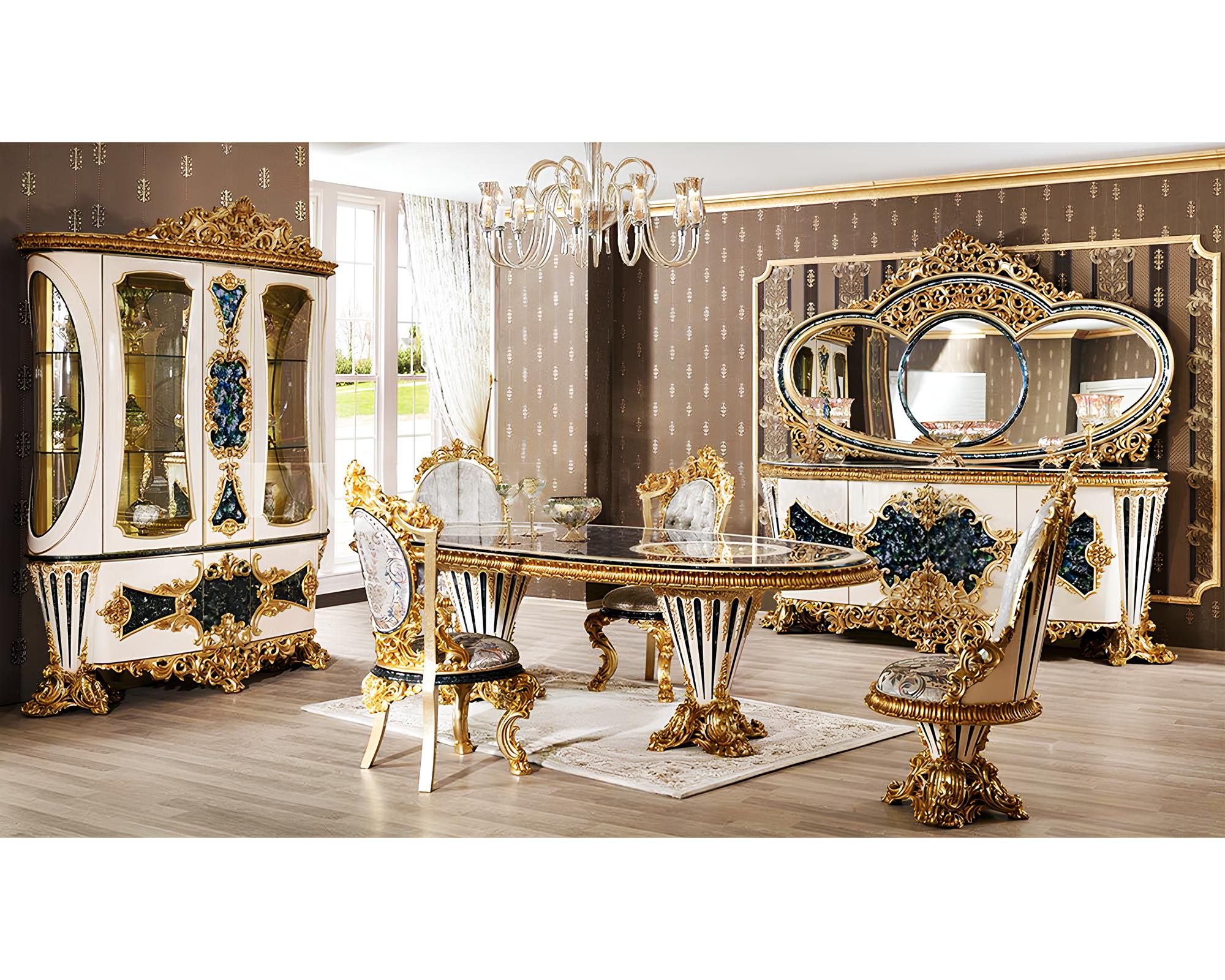Elevate Your Dining Experience with our Exquisite Classical Solid Wood Luxury Tandiya Dining Table Set. Crafted to Perfection, this Timeless Masterpiece Adds Elegance and Style to Your Space. Immerse Yourself in Unmatched Luxury and Comfort. Perfect for Those Who Appreciate the Finer Things in Life. Explore Now!
