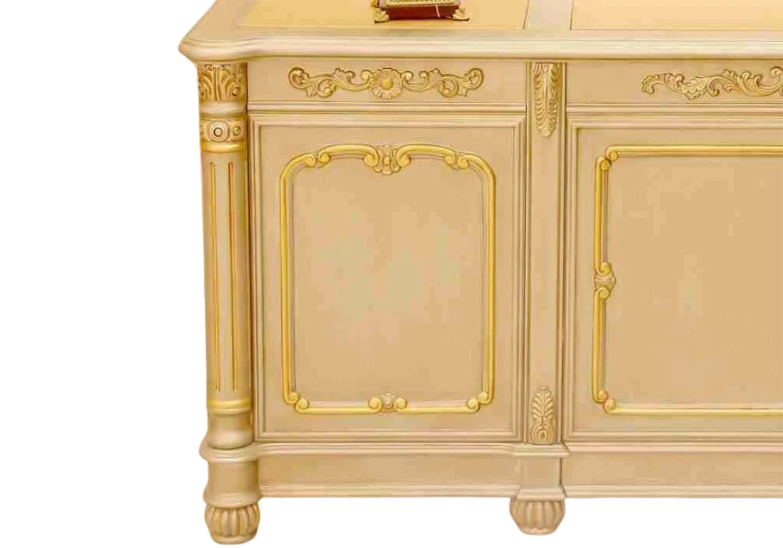 In addition to its artistic beauty, the Elegant Hand Carved Teak Wooden Office Desk provides a practical and spacious work surface, making it a great choice for productivity. It serves as both a functional workspace and a statement piece that elevates any office environment. Whether used in a professional office or a home workspace, this desk embodies a sense of timeless elegance and craftsmanship, catering to those who appreciate the fusion of aesthetics and utility in their workspace furniture.