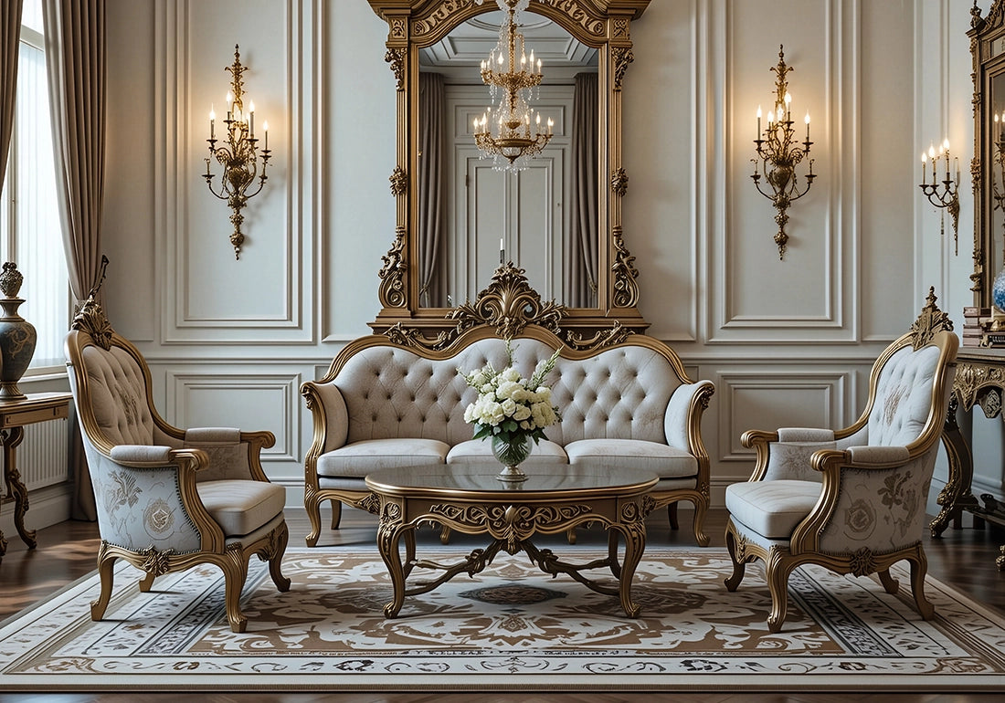 Infuse your living room with unmatched grandeur through this European Design Imperial Elegance wooden Carved Sofa Set — a masterpiece of heritage and elegance. Crafted from 100% solid teak wood and finished in a rich duco paint, this set offers a harmonious blend of sophistication and durability. The plush upholstery, paired with intricate hand-carved detailing, transforms your space into a royal retreat.