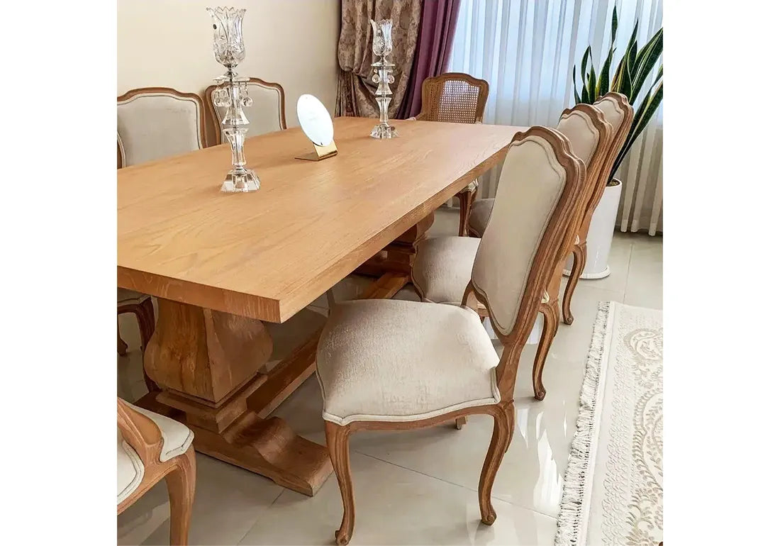 Transform your dining room into a timeless masterpiece with our Hand Carved Wooden Made Classical Dining Table Set. Crafted with exquisite precision, this dining table set exudes elegance and sophistication, featuring intricate hand-carved details that bring a touch of vintage charm to your space. Crafted from solid wood, our artisanal masterpiece ensures both durability and style, making it the perfect addition to your home. Elevate your dining experience, create lasting memories, and impress your guests with a blend of classical artistry and sturdy craftsmanship. Explore our Hand Carved Wooden Made Classical Dining Table Set and make your dining room the epitome of luxury and tradition.