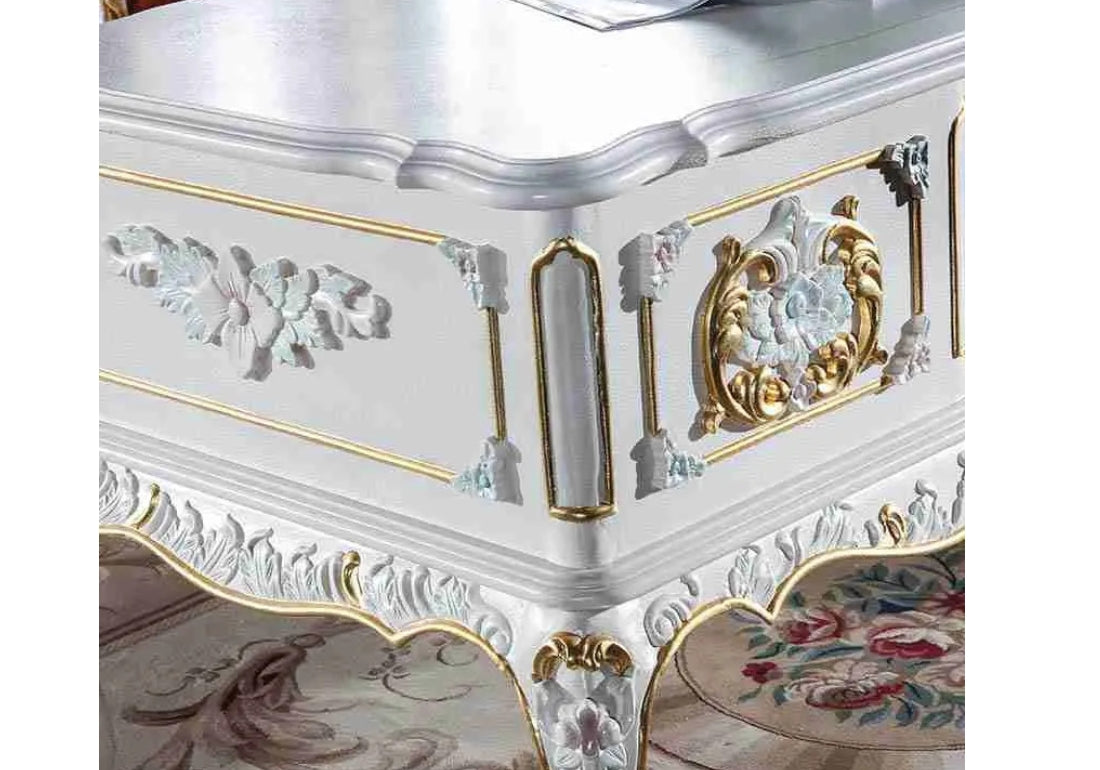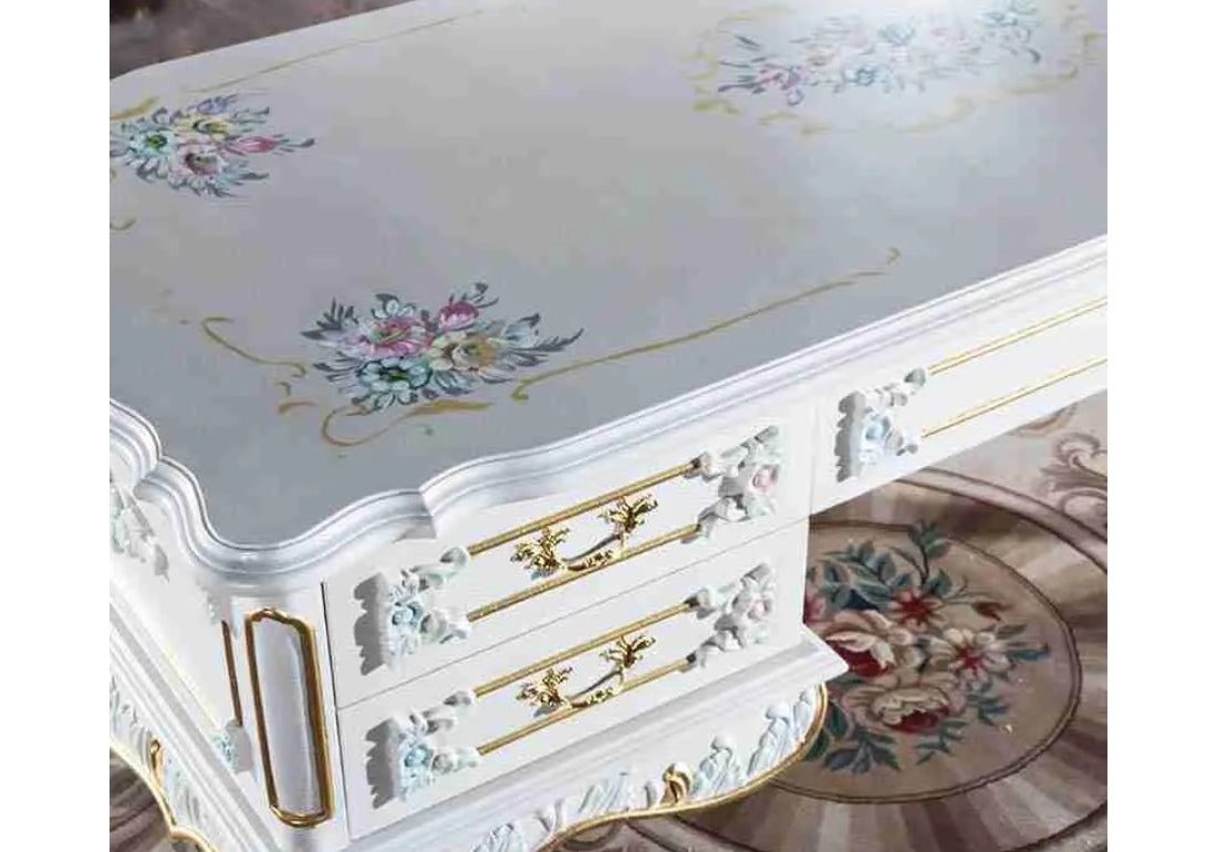 Made from high-quality teak wood, this table not only boasts exceptional durability but also showcases the exquisite natural grain patterns of the wood. The ivory finish adds a touch of refinement and versatility to the design, making it suitable for a variety of office settings, from classic to contemporary. Its carefully crafted details, such as intricate carvings and fine finishing, set it apart as a unique and opulent addition to any workspace.