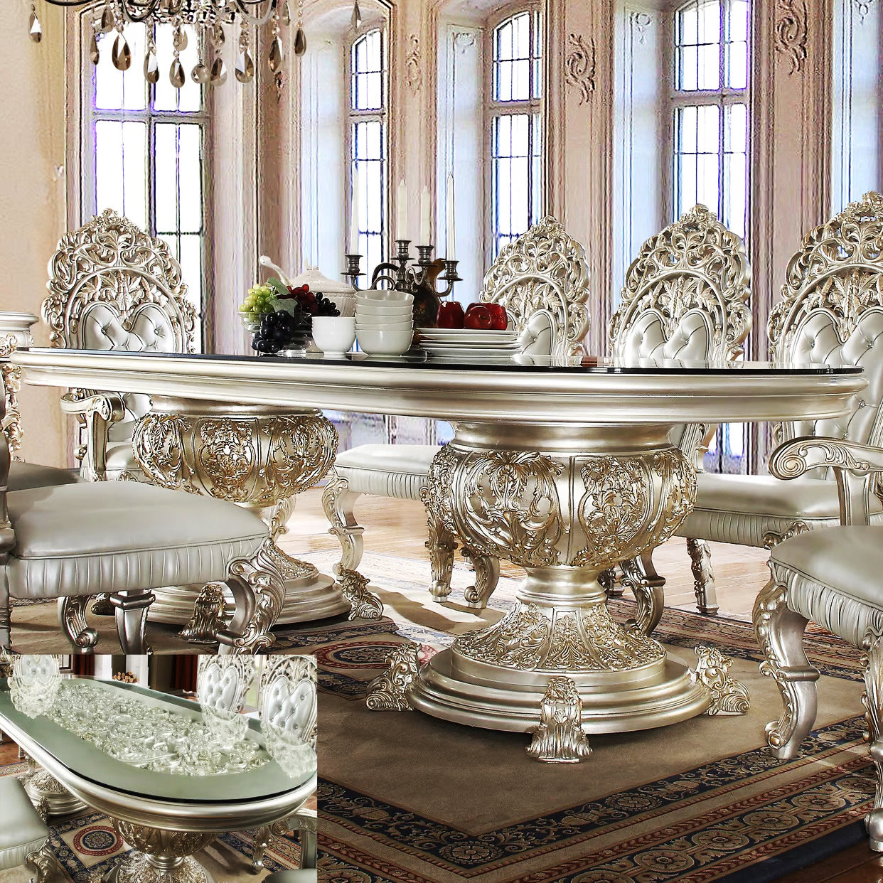 Indulge in a royal dining experience with the Victorian Style Formal Dining Room Set. This set exudes opulence with its ornate carvings and meticulous attention to detail. European design elements are incorporated to create an attractive framework that exudes luxury from every angle.