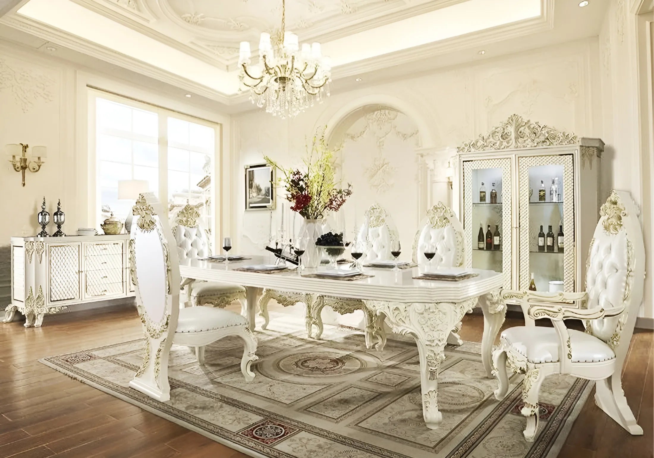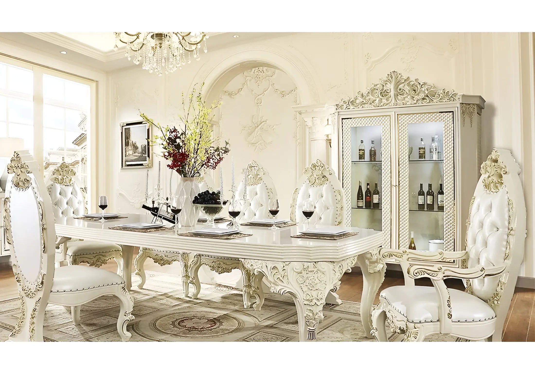 Elevate Your Dining Experience with Our Exquisite Luxurious Hand-Carved Solid Wood Dining Table Set. Crafted to Perfection, This Elegant Set Enhances Your Space While Providing Functionality. Experience Unmatched Sophistication and Quality. Perfect for Creating Cherished Moments with Loved Ones. Explore Now!