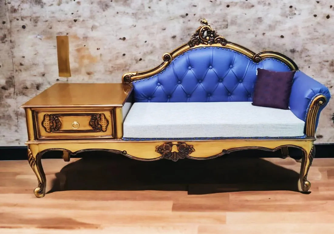 Indulge in the epitome of sophistication with our "Luxury and Unique Look Handcrafted Chaise Lounge with Storage." Immerse yourself in opulence as you recline upon this exquisitely designed piece, meticulously handcrafted to perfection. Uniting functionality with style, this chaise lounge not only offers a sumptuous seating experience but also provides convenient storage space, seamlessly blending luxury and practicality. The unique aesthetic appeal of this furniture transcends ordinary lounging, elevating your living space to a realm of unmatched elegance. Crafted with precision and an eye for detail, our chaise lounge is a testament to fine artistry, making it a captivating centerpiece that effortlessly enhances the ambiance of any room. Elevate your lifestyle with this exclusive blend of luxury and uniqueness, a statement piece that speaks volumes about your refined taste.