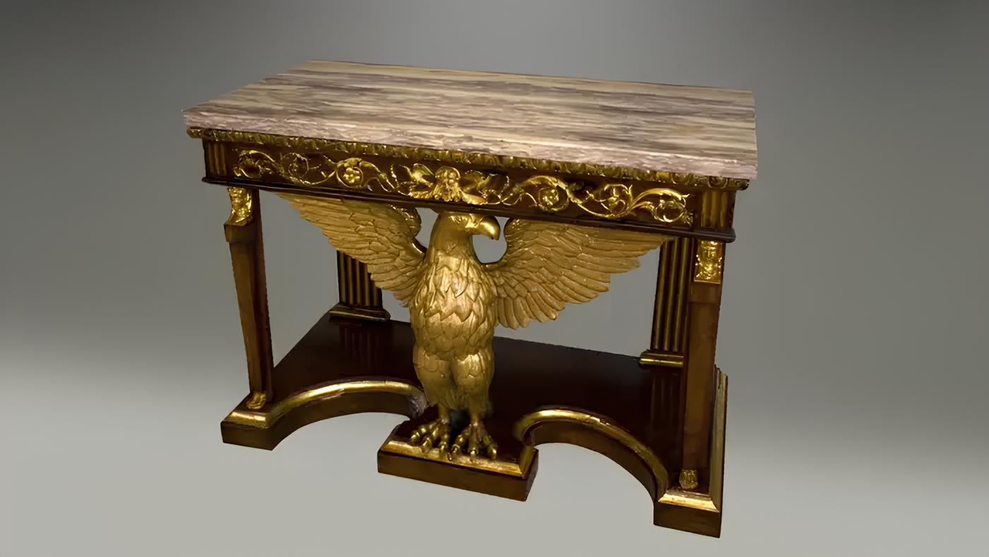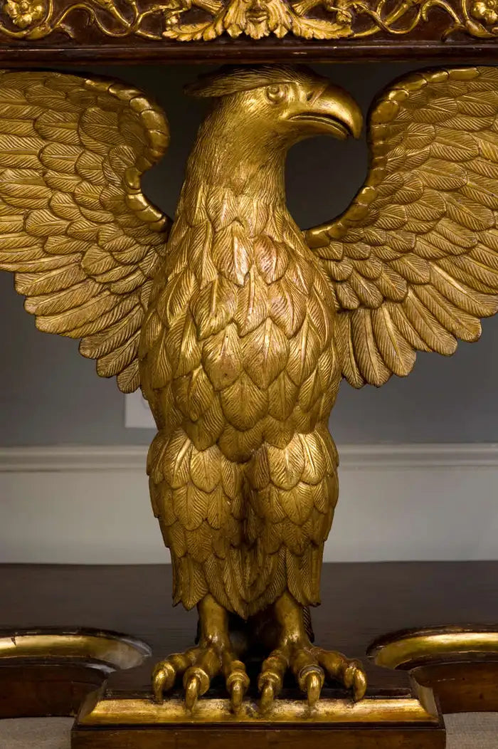 This stunning side table is a masterpiece of craftsmanship. The solid mahogany construction is both sturdy and elegant, and the intricate carving of the eagle motif is both beautiful and awe-inspiring. The table's curved design is both unique and eye-catching, and it will complement a variety of décor styles.
