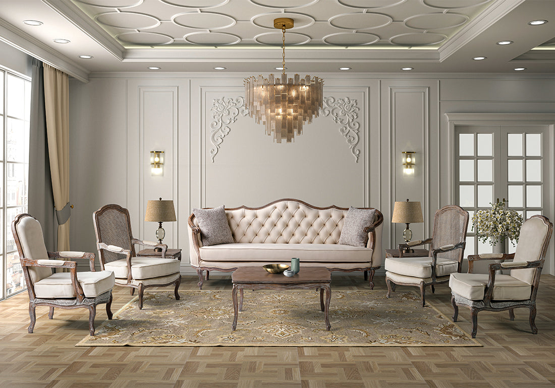 Immerse your home in timeless beauty with the Luxury Antique Handcrafted Wooden French Style Sofa Set. This classical set showcases the perfect balance of sophistication and artisan craftsmanship, making it a stunning centerpiece for any living space.