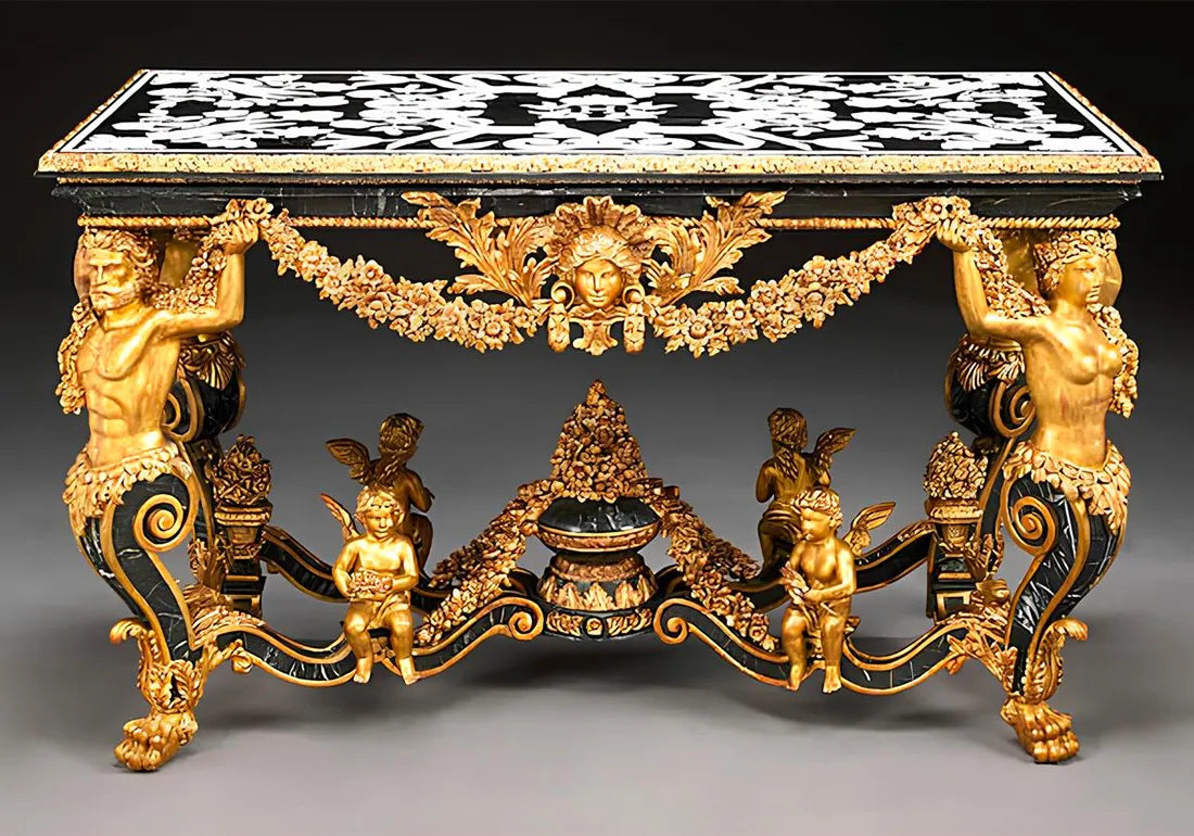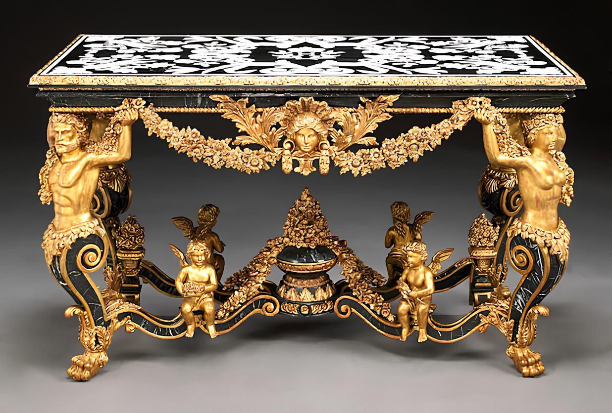 Introducing our Luxury Antique Neoclassical Style Side Table, a true embodiment of timeless elegance and opulence. This magnificent centerpiece seamlessly blends antique charm with luxurious craftsmanship, making it a captivating addition to any sophisticated living space.