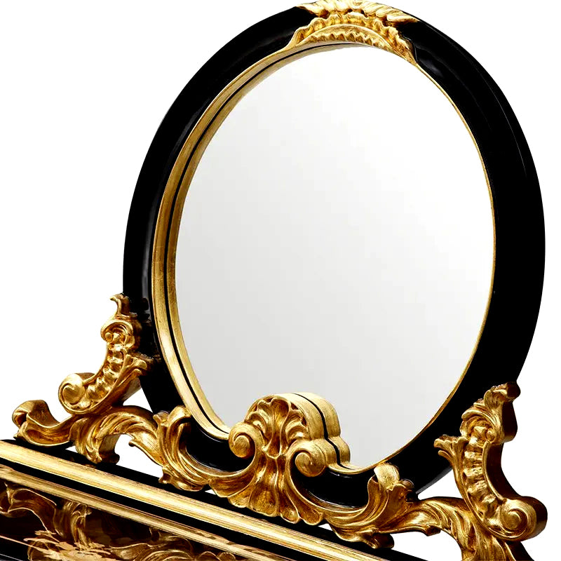 Introducing our exquisite Black French Style Hand Carved Dressing Table, a true embodiment of opulence and sophistication. This extraordinary piece of furniture seamlessly blends classic French design elements with contemporary luxury, resulting in a statement piece that will elevate any space.