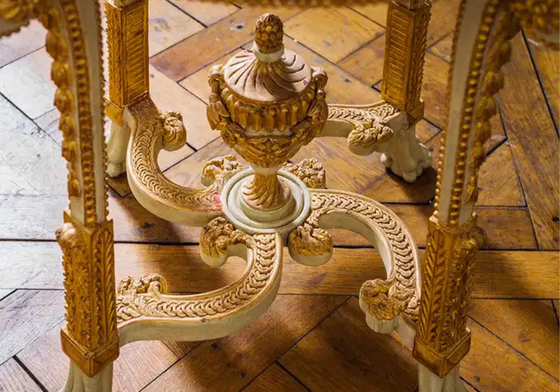 This stunning side table is a beautiful blend of modern and traditional styles. The solid teak wood construction is both sturdy and elegant, and the intricate carving adds a touch of luxury. The Louis XVI-style legs give the table a classic look that will complement any décor.