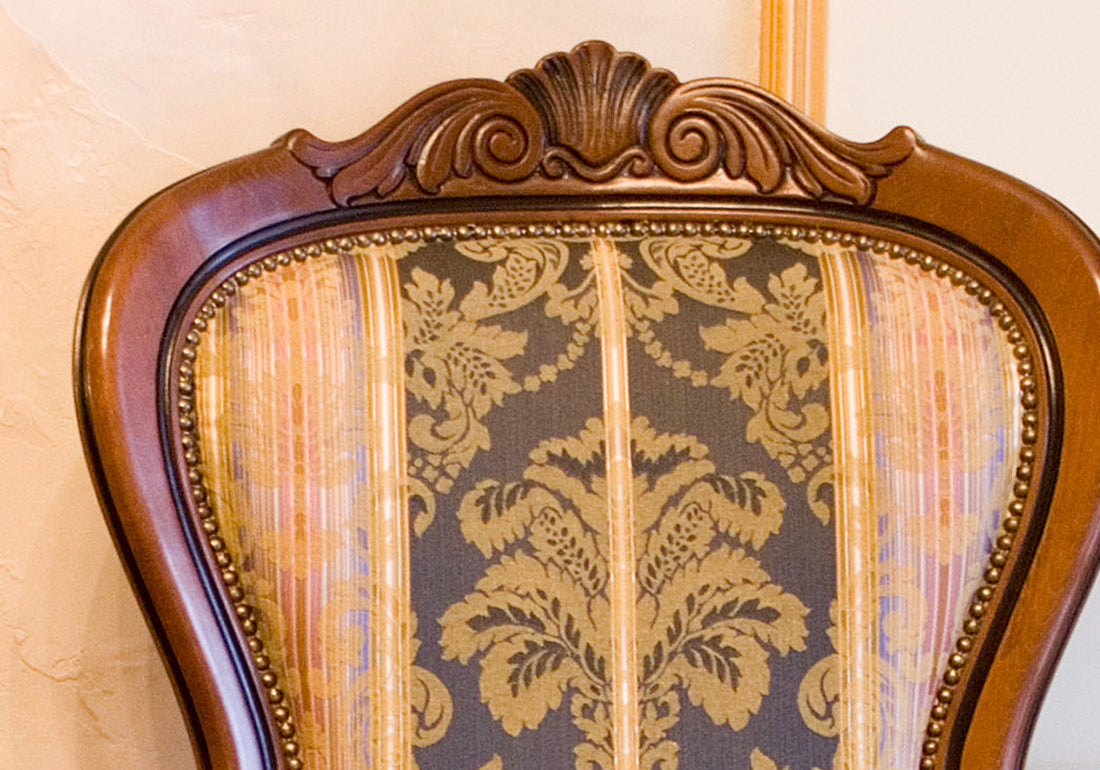 Fabric is subject to availability, with alternative matching options provided; Polish is as shown but may vary slightly in appearance, while hand-carved details may differ slightly due to the nature of craftsmanship.