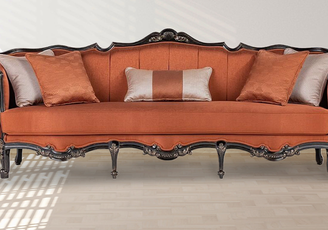 Hand-Carved Craftsmanship: The solid wood frame showcases intricate carvings, each detail revealing the expertise of skilled artisans. These elegant accents lend a sense of grandeur and a touch of vintage charm, making this sofa a striking focal point in any room.