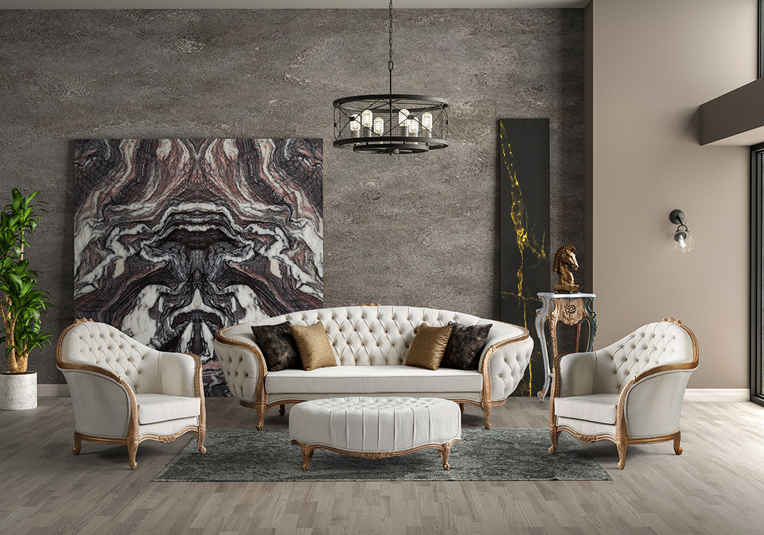 Tailor the sofa set to match your style and preferences with customizable fabric, leather, or wood finishes. Whether you prefer classic earth tones, bold colors, or intricate upholstery patterns, this sofa set can be personalized to suit your unique taste.