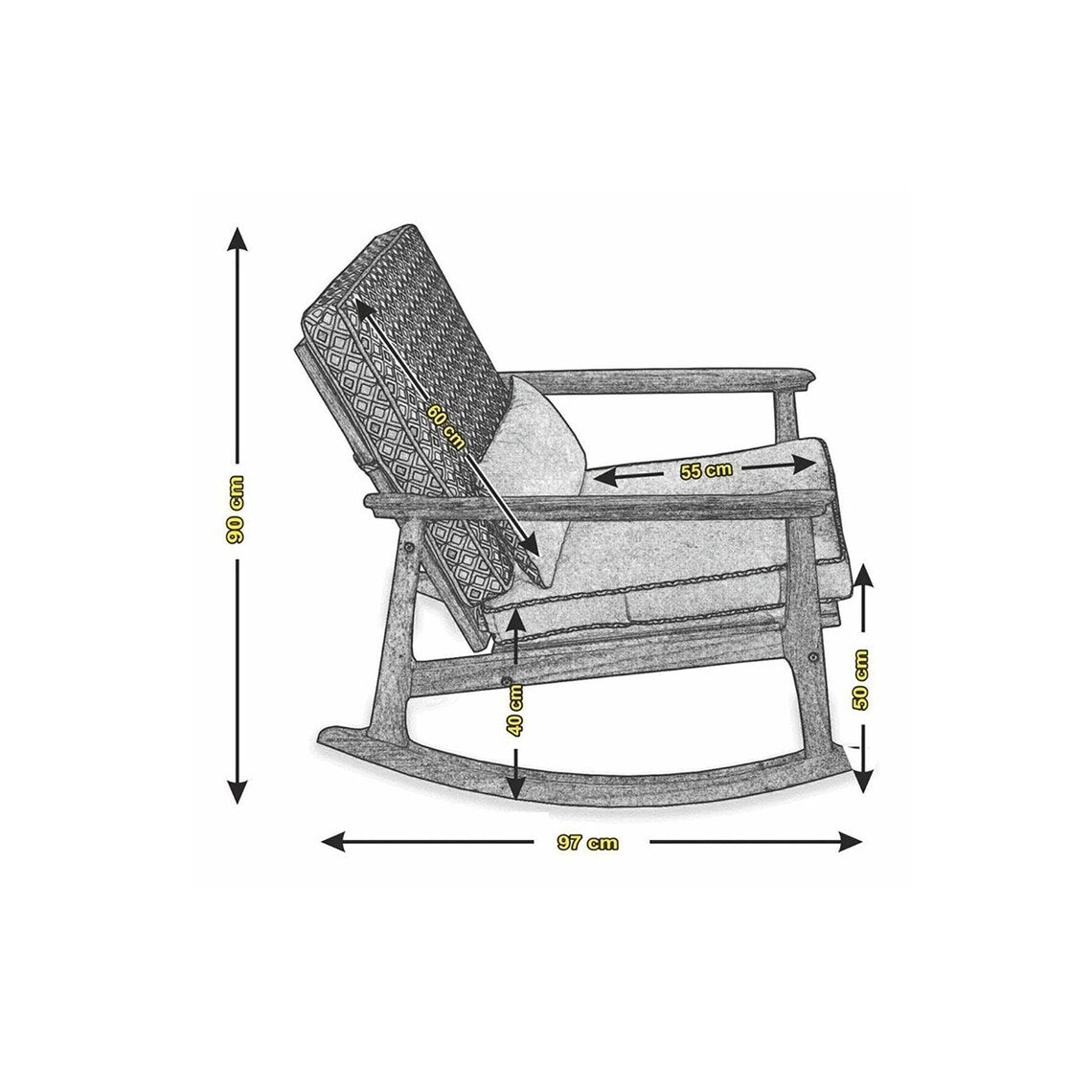 Immerse yourself in a world of comfort as you sink into the plush, cushioned seat and gently rock back and forth. The ergonomically designed backrest provides exceptional lumbar support, ensuring hours of pure relaxation. The teakwood frame, known for its exceptional durability and natural beauty, adds a touch of sophistication to your living room, nursery, or outdoor patio.