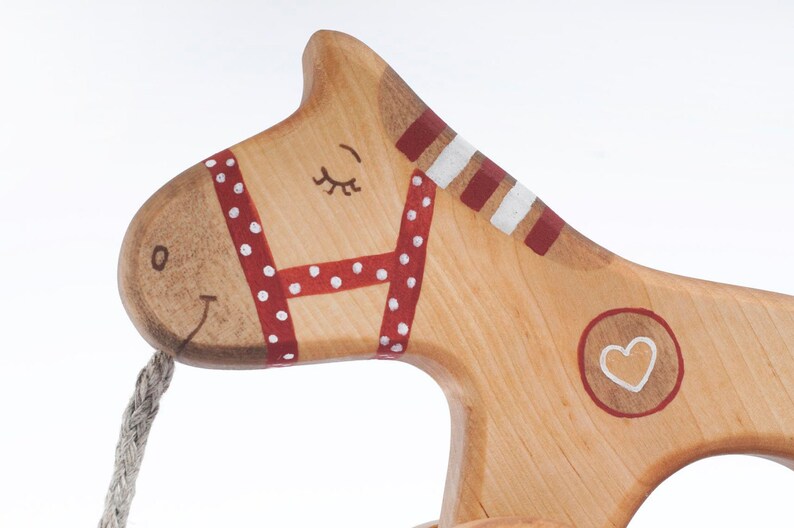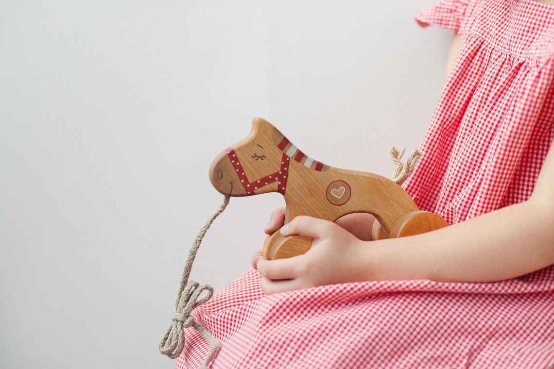 Delight your little one with the charm of our heirloom-quality Wooden Pull Along Horse Toy in a captivating shade of red. Designed to spark imagination and encourage physical development, this classic toy is the perfect companion for your toddler's playtime adventures.