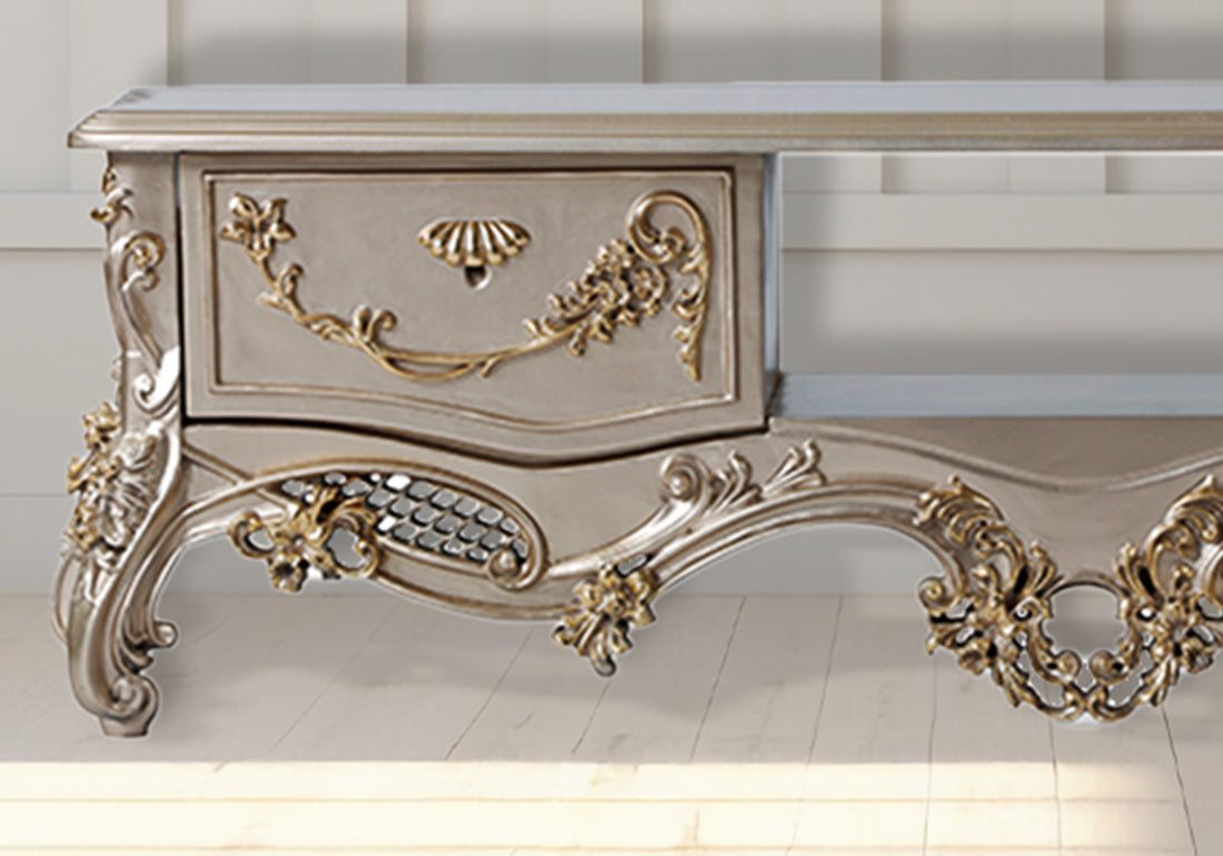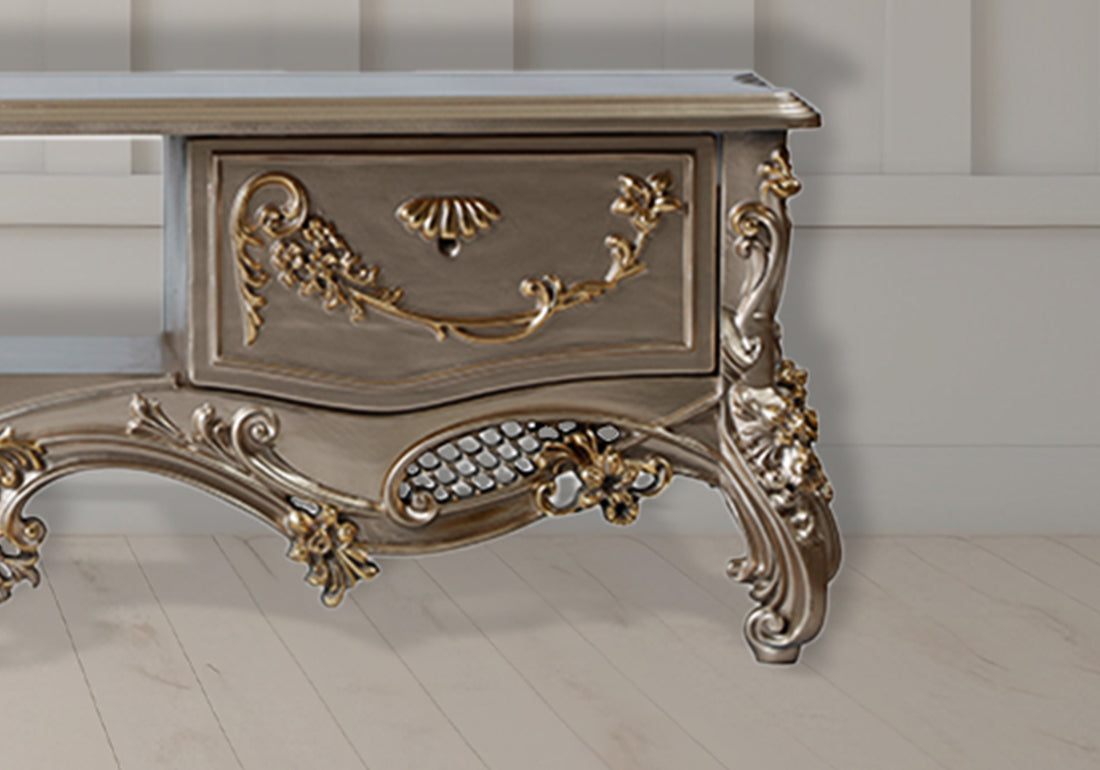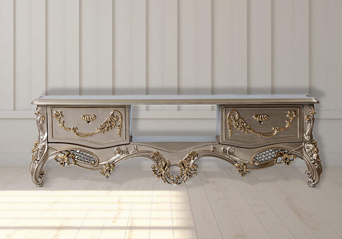 Introduce timeless charm and functionality to your living space with the Vintage Serenity Teak Wood TV Unit, a beautifully crafted piece designed to enhance your home with elegance and practicality.