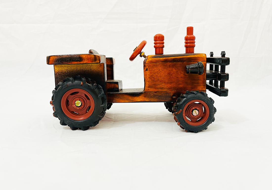 The wooden brown tractor kids' toy is a rustic delight for young farmers and adventurers. Crafted from durable wood, it ensures both safety and durability for countless play sessions. With its charming brown hue and realistic design, it sparks imaginative farmyard adventures and creative storytelling.